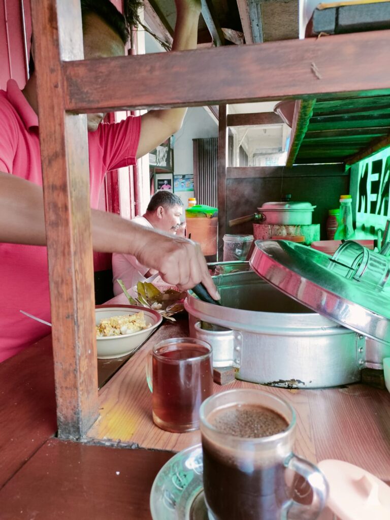 Letaknya di depan Bank BCA Gatot Subroto, yang menarik adalah besarnya ketupat seukuran kepala anak bayi berumur 3 bulan yang tak terkira lumernya serta padat yang terukur dan membuat kita lupa, kalau mertua sedang lewat di depan kita, saat sedang menikmati bersama kopi panas.