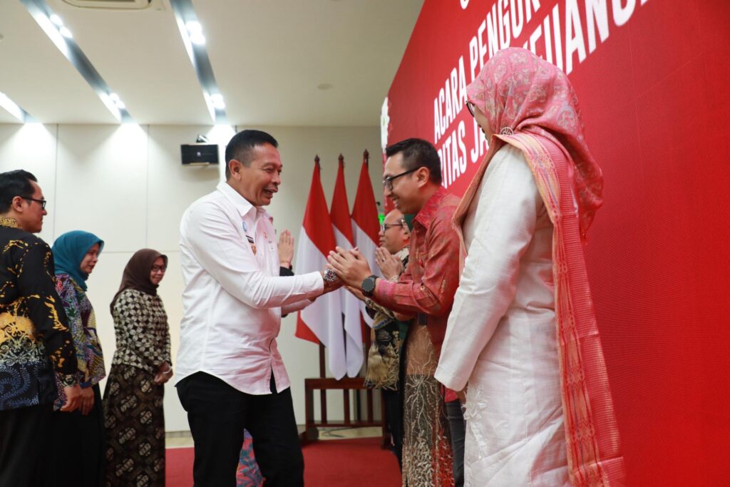 Malang, MKoran – Wali Kota Malang Dr. Ir. Wahyu Hidayat, MM menghadiri pengukuhan Kepala Kantor OJK Malang yang baru, Farid Faletehan, di Kantor OJK Malang, Rabu (7/5/2025). Menyambut kepemimpinan baru OJK Malang, Walikota Wahyu berharap di bawah kepemimpinan Farid dapat memperkuat peran OJK serta memberikan dampak terhadap pertumbuhan ekonomi daerah. Ia juga mengajak OJK untuk terus memperkuat kolaborasi dengan Pemerintah Kota Malang khususnya dalam pengawasan sektor keuangan.